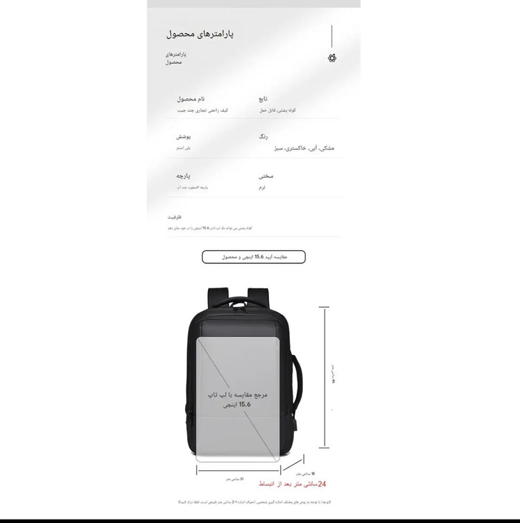 کوله پشتی لپ تاپ وارداتی داری پورت USB و کاملا ضد اب